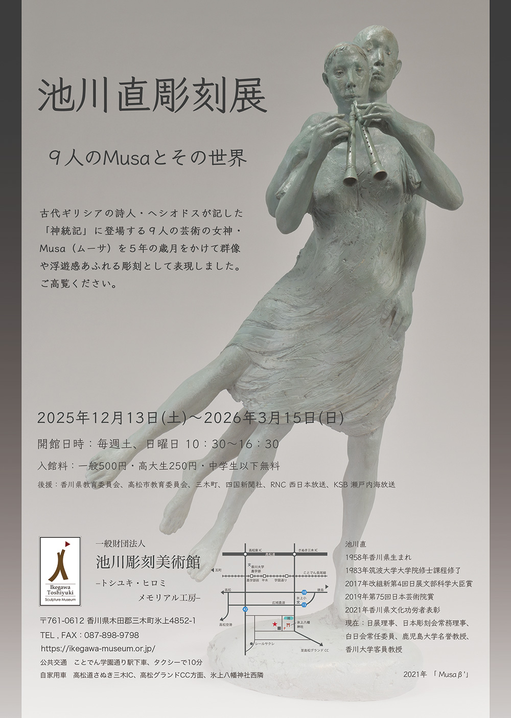 - 2025年12月13日(土)から2026年3月16日(日)の間、企画展「池川直彫刻展 9人のMusaとその世界」を開催します。